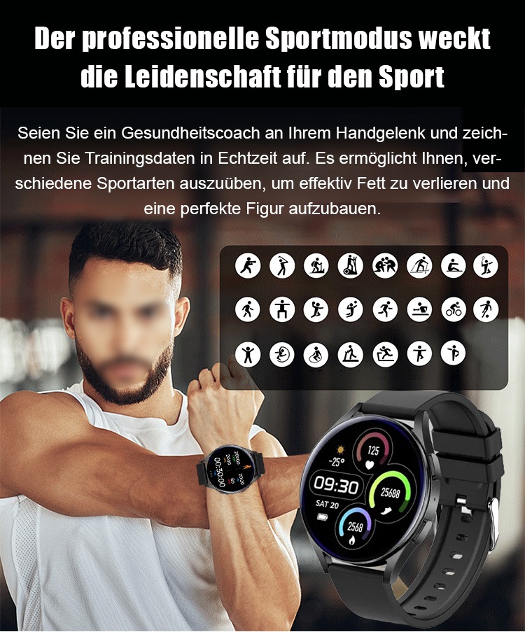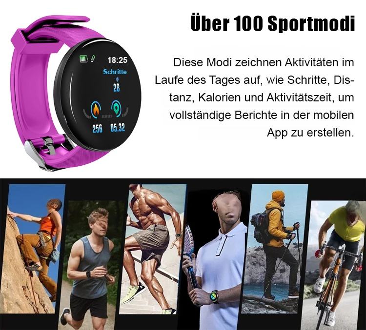 D18 Herzfrequenz- und Blutdrucküberwachungs-Sportuhr