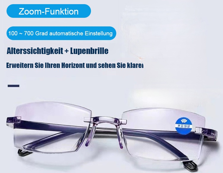 Intelligenter Zoom Anti-Müdigkeit Komfort Superleichte Kristall-Lesebrille