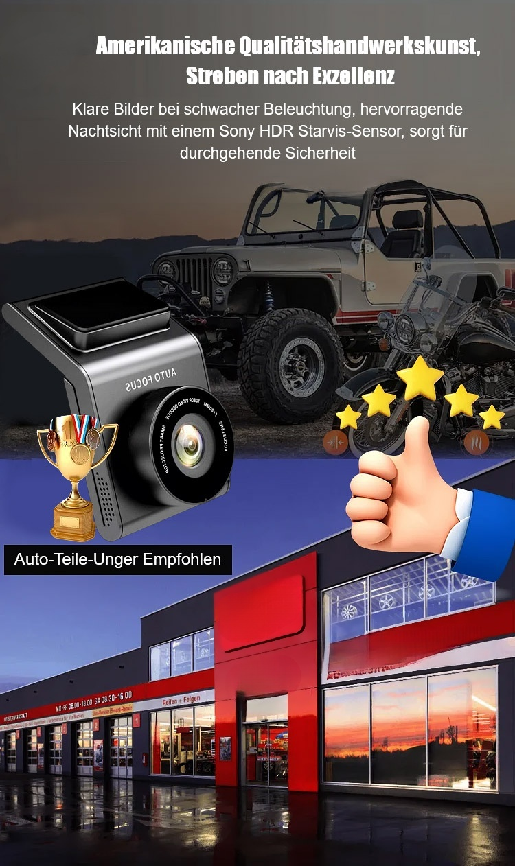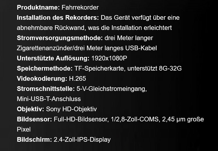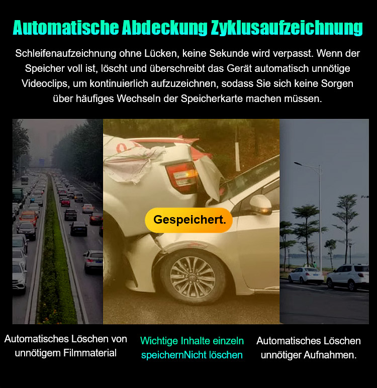[Kostenlose Speicherkarte] HD-Nachtsicht-Fahrrekorder