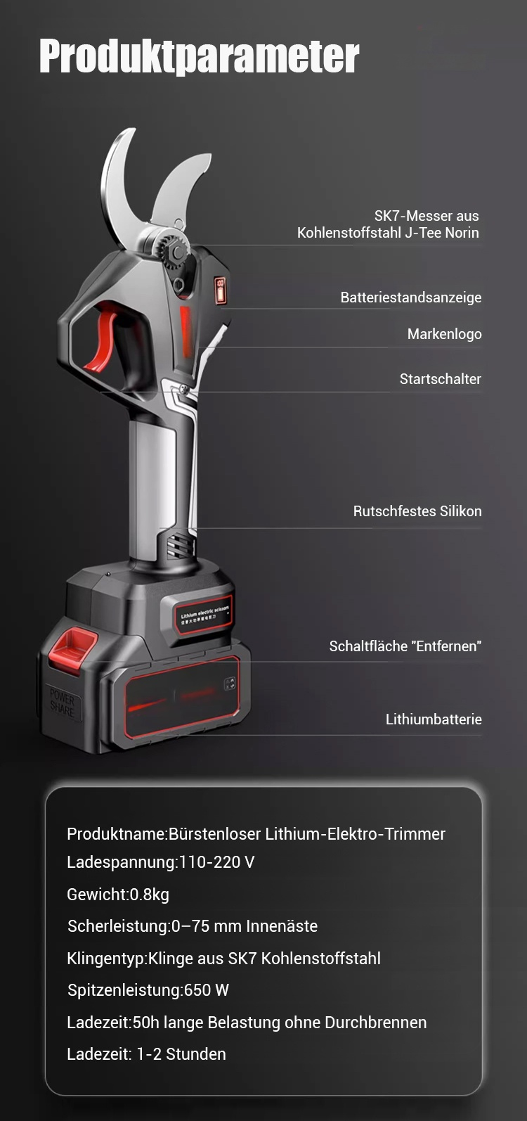 【Scharf und langlebig】Ultraleichte Lithium-Akku-Astschere