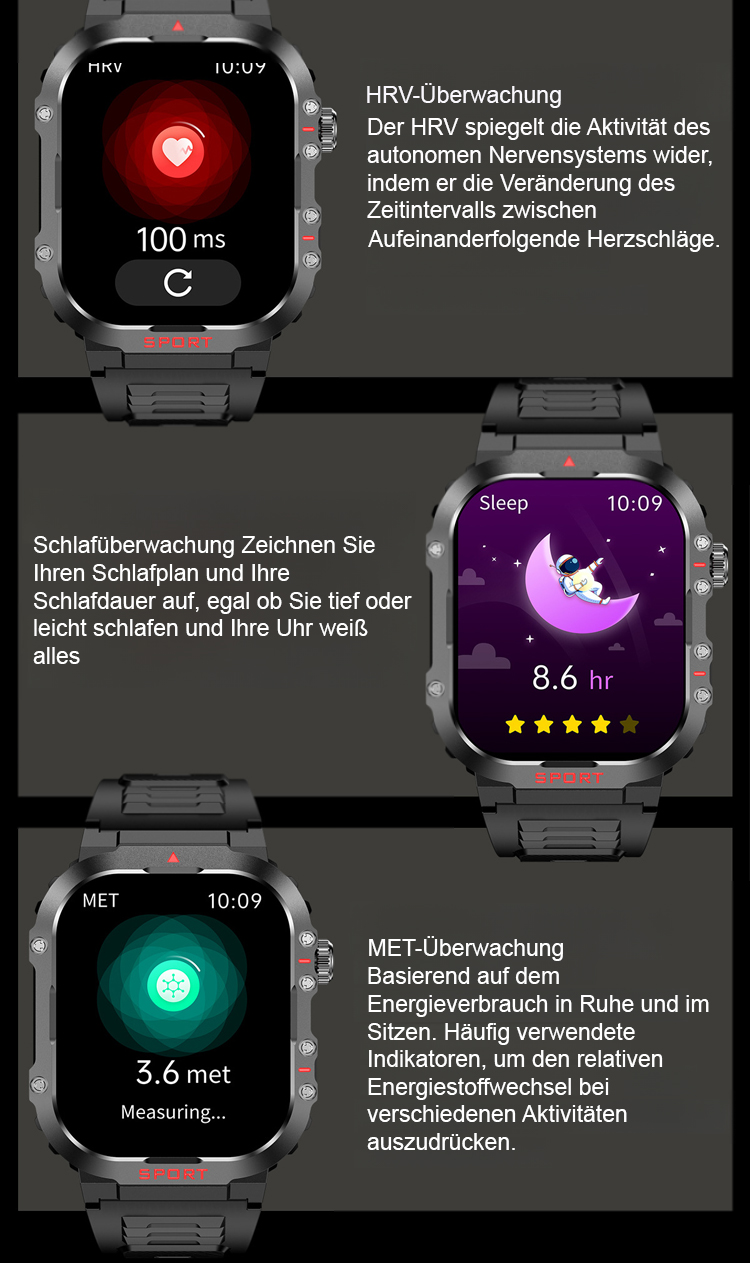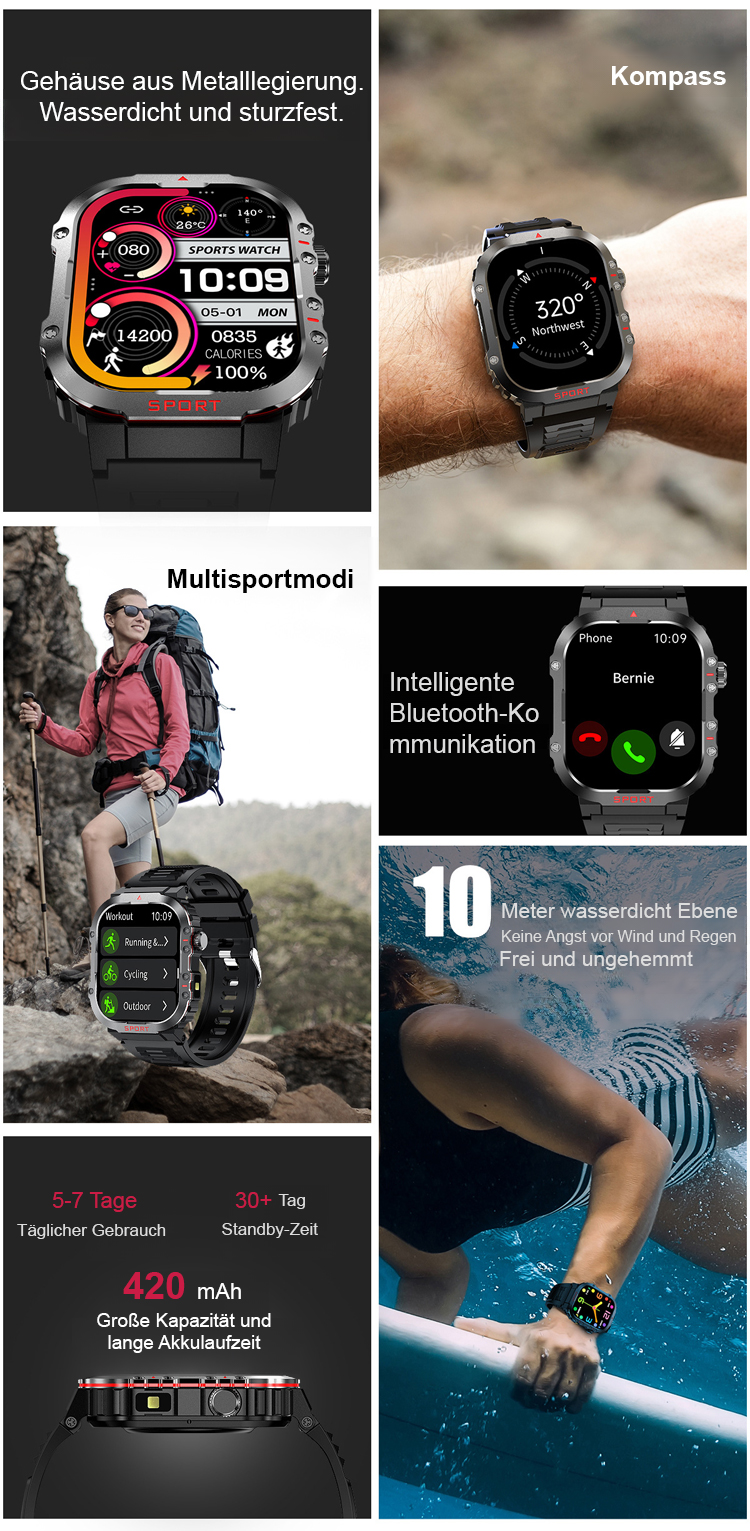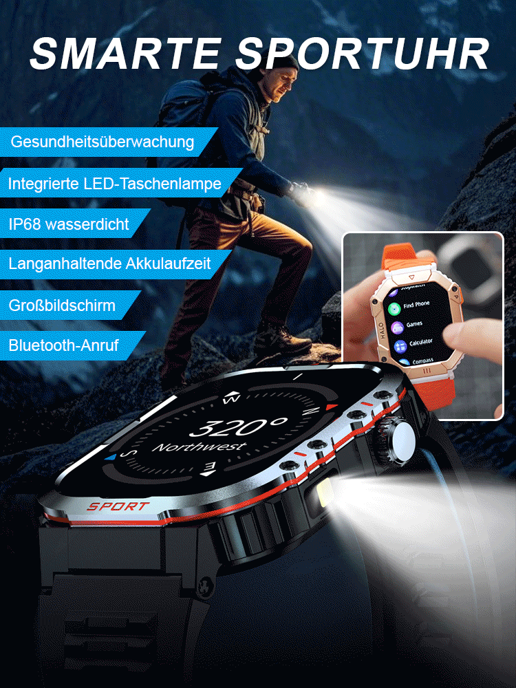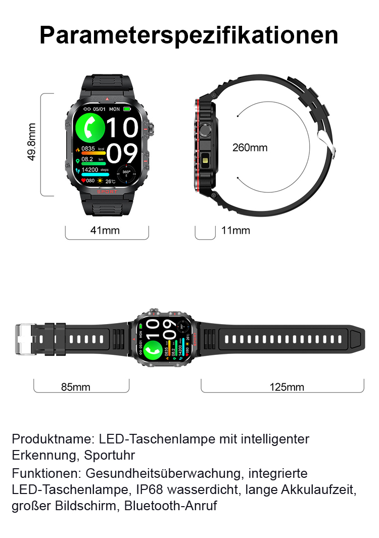 LED-Taschenlampe Intelligente Bewegungserkennungs-Smartwatch