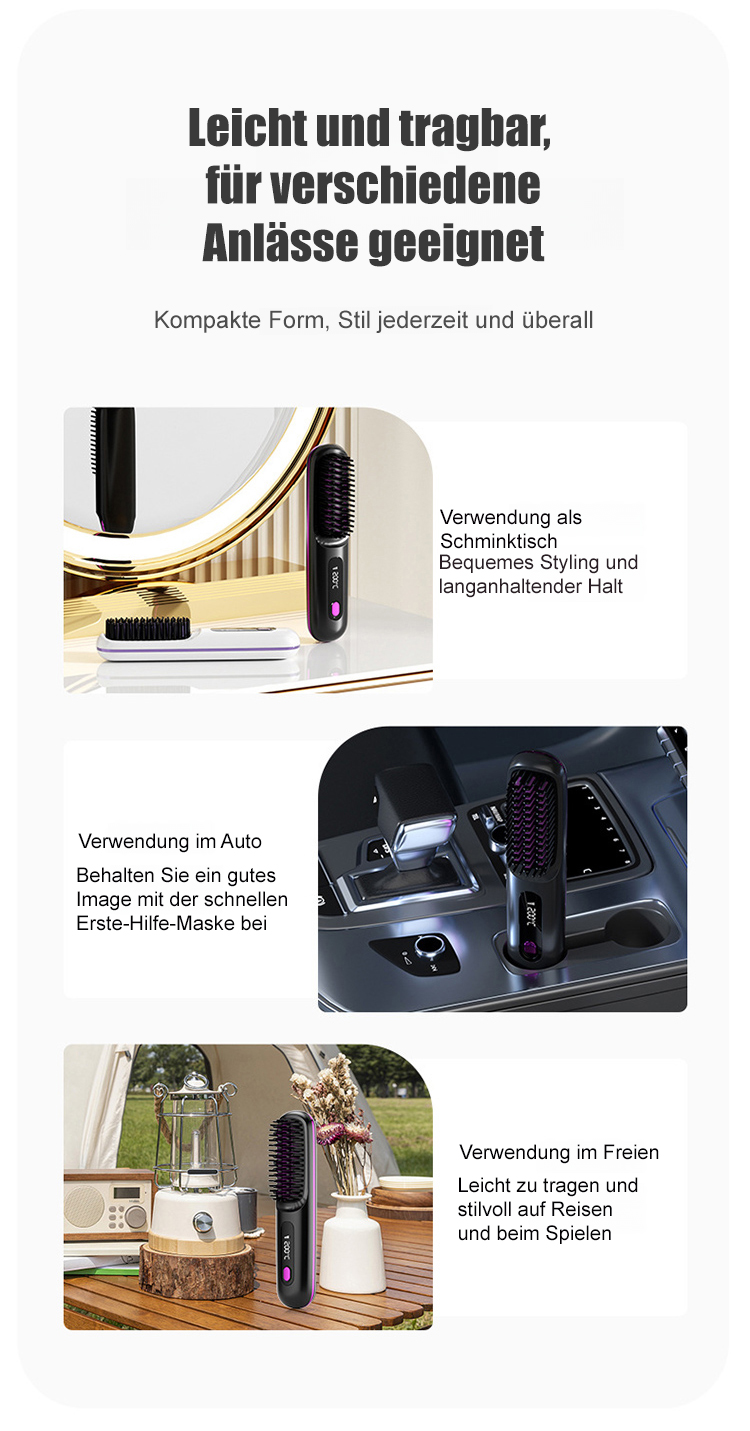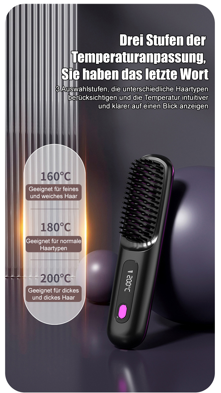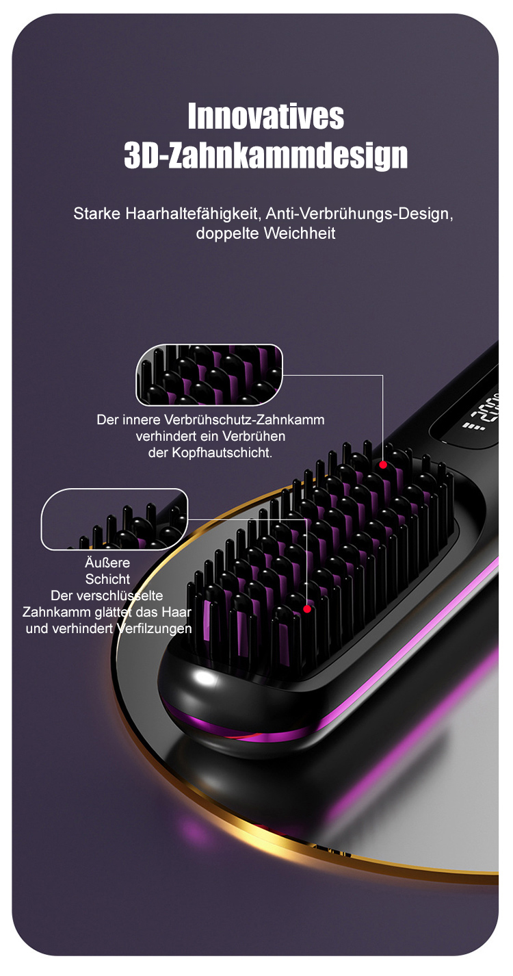 Kabelloser LCD-Keramik-Heizkamm zum Glätten der Haare