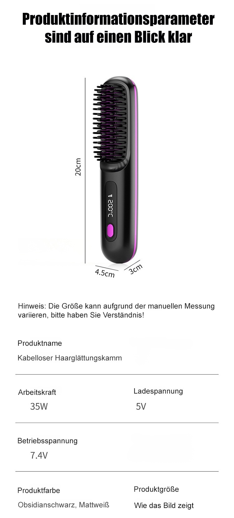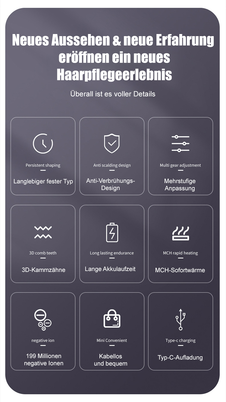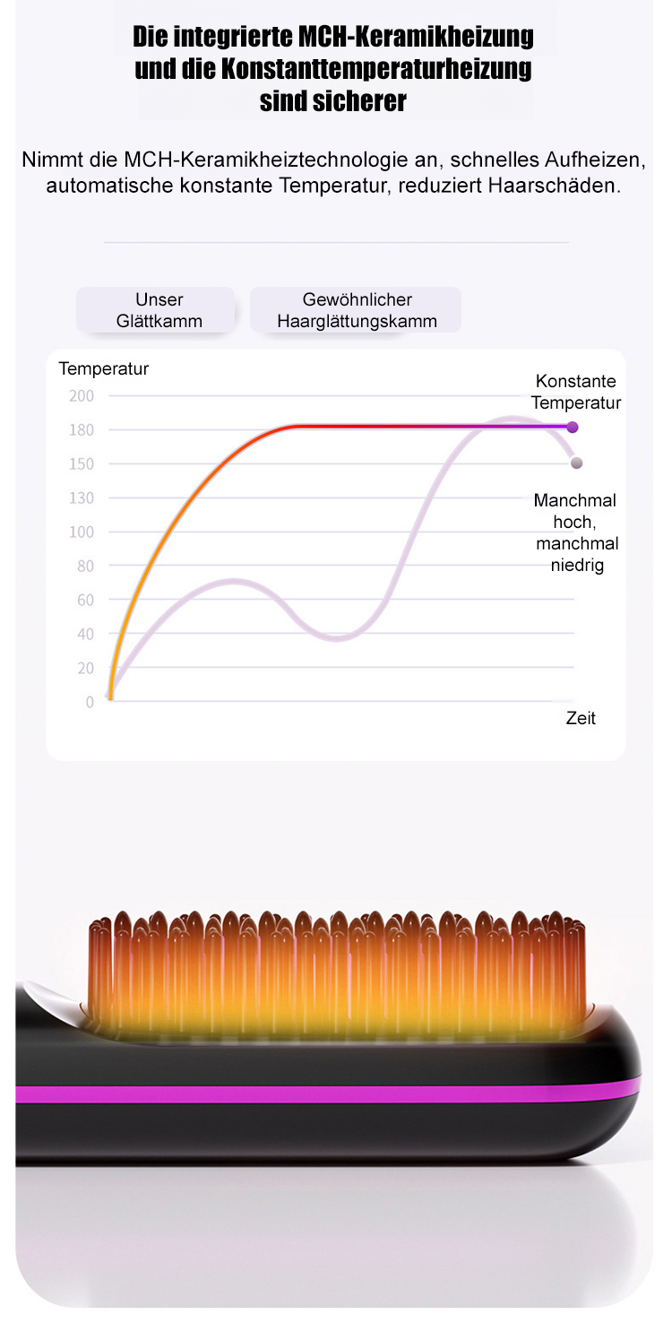 Kabelloser LCD-Keramik-Heizkamm zum Glätten der Haare